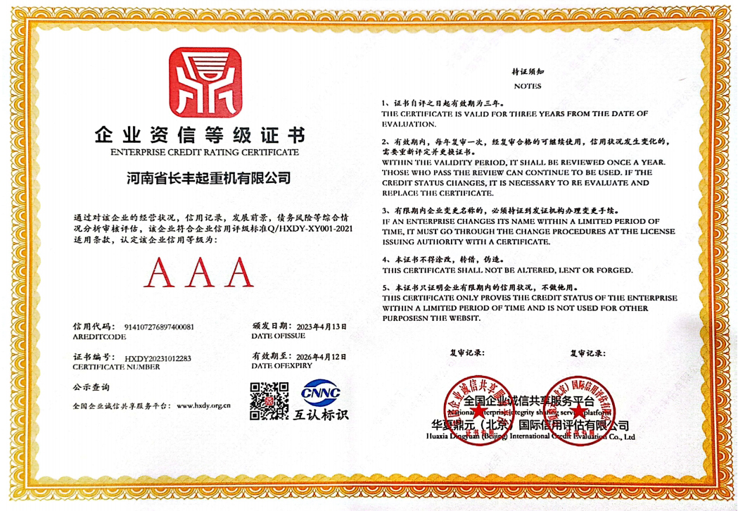 河南省長豐起重機(jī)有限公司是生產(chǎn)起重機(jī)的實(shí)力廠家,主要從事:單梁起重機(jī)、雙梁起重機(jī)、門式起重機(jī)、防爆系列起重機(jī)的制造與銷售。本公司是中國起重行業(yè)協(xié)會(huì)成員單位,具有國家質(zhì)量監(jiān)督檢驗(yàn)檢疫總局頒發(fā)的單、雙梁起重機(jī)、門式起重機(jī)、特種設(shè)備制造許可證和安裝、改造、維修許可證。