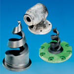 這些噴嘴即使在服役幾年后仍然沒有明顯的磨損,因此已被作為脫硫應(yīng)用的行業(yè)標(biāo)準(zhǔn)。成都密度噴霧技術(shù)有限公司生產(chǎn)的實心錐、空心錐和螺旋噴嘴或更復(fù)雜形狀的噴嘴,都可采用這種陶瓷材料。這種噴嘴的另一個主要特性是它們的接口方式。常見的接口方式有法蘭盤連接和管夾連接。