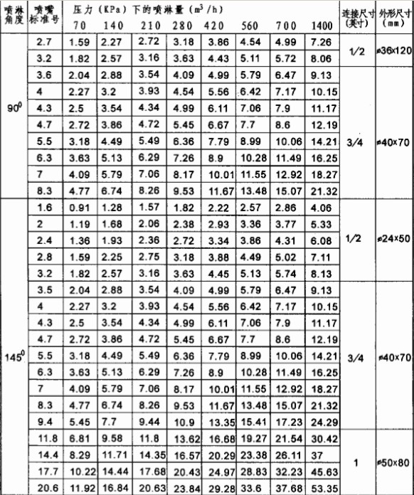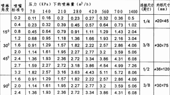 壓力/流量比值最小。無內(nèi)件設(shè)計(jì),流道順暢,抗堵塞。啟噴壓力小,操作彈性大。一般壓力時(shí)不易霧化。液滴直徑分布均勻。噴淋角度隨壓力變化而變化。推薦噴淋角度:15°~145°。常用材料:1Cr18Ni9Ti;0Cr18Ni9(304SS);0Cr17Ni14Mo2(316SS);00Cr17Ni14Mo2(316L);哈氏合金;聚丙烯(PP);聚四氟乙烯(PTFE);海軍黃銅。