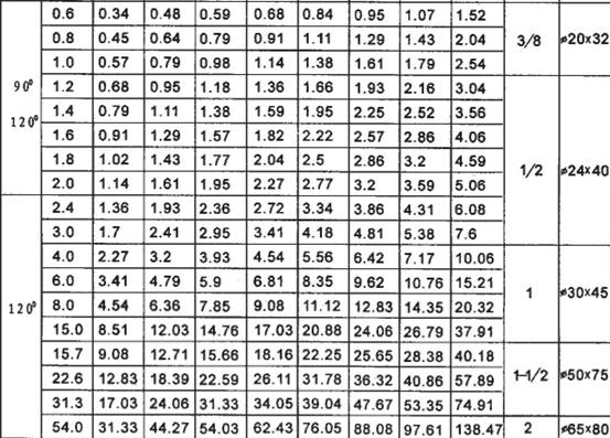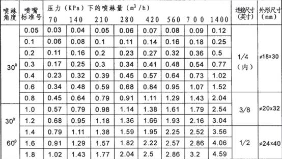 壓力/流量比值最小。無內(nèi)件設(shè)計,流道順暢。啟噴壓力小,操作彈性大。壓力較高時易霧化。液滴直徑分布均勻。噴淋角度穩(wěn)定。推薦噴淋角度:30°,60°,90°,120°。常用材料:1Cr18Ni9Ti;0Cr18Ni9(304SS);0Cr17Ni14Mo2(316SS);00Cr17Ni14Mo2(316L);哈氏合金;聚丙烯(PP);聚四氟乙烯(PTFE);海軍黃銅。